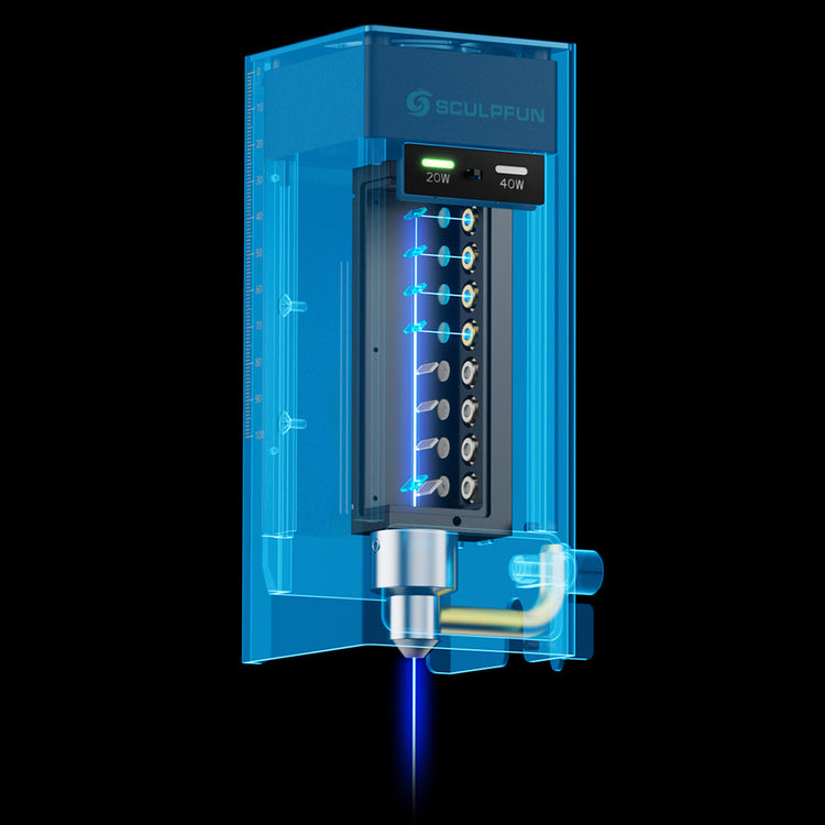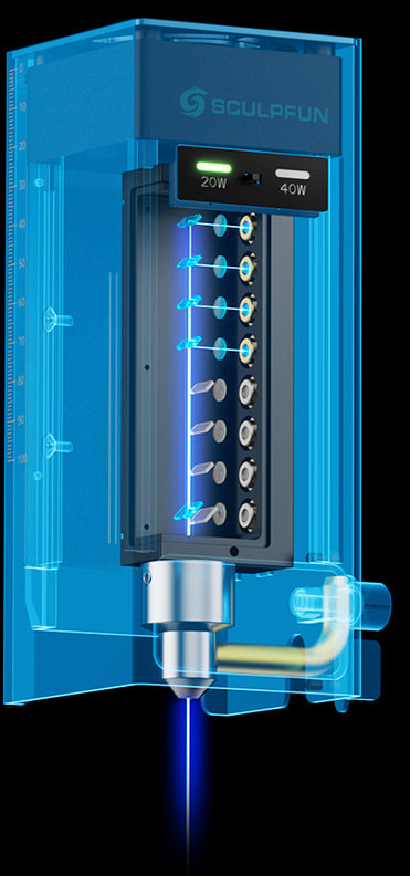 40Wと20Wのレーザー出力切り替えに対応し、切断でも彫刻でも楽々操作が可能です。
