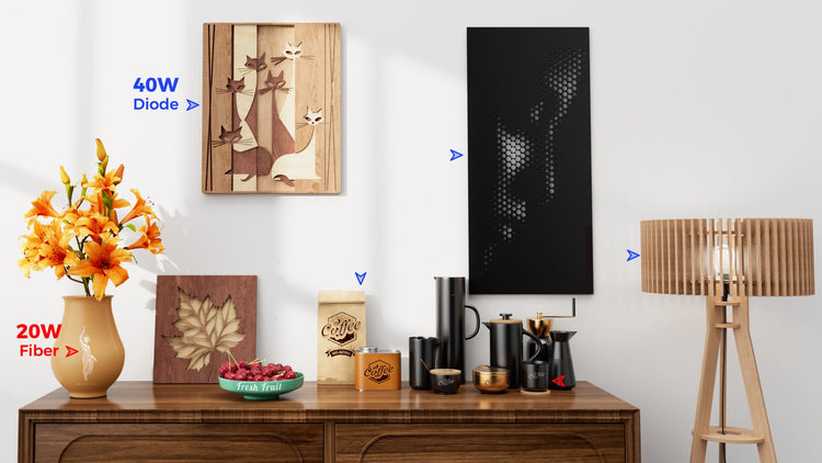20Wファイバーレーザーと40Wダイオードレーザーを搭載したA9 Ultra Dualは、350種類以上の素材をシームレスに加工します。超大型作業領域と相まって、無限の創造的領域を切り開き、あらゆるプロジェクトが想像力の限界を超越することを可能にします。